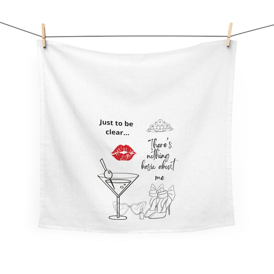 Calling all the stylin' gals! "Just to be clear... There's nothing basic about me" towel for your fancy self, friends and lovers. IYKYK