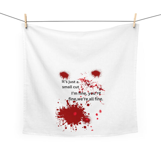 Humorous Blood Splatter Tea Towel - "It's Just a Small Cut" Reminds Us that We're Not all Built the Same